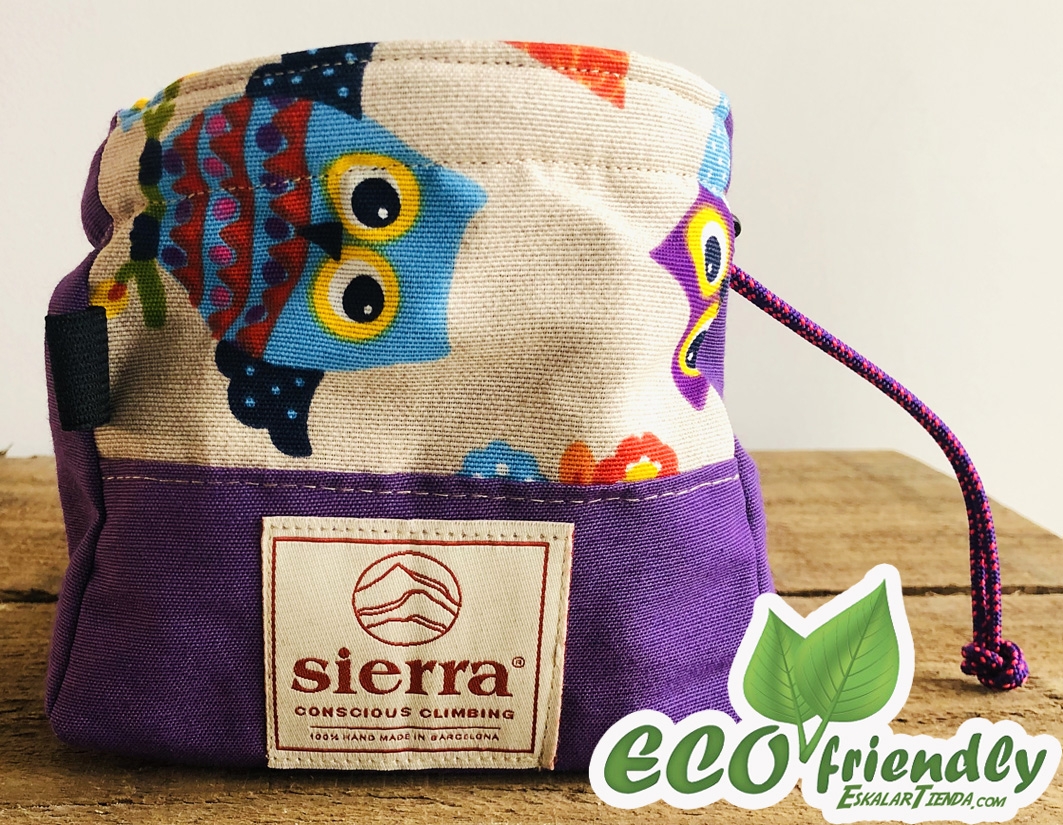 Bolsa Magnesio Owl Sierra está confeccionada con materiales ecológicos, algodones orgánicos y poliésteres reciclados, cada magnesera es ÚNICA. Diseñada y fabricada para aquellos escaladores que buscan ligereza con un diseño atractivo, exclusivo y fresco, con unas dimensiones que aseguran una gran capacidad y un fácil acceso al magnesio.