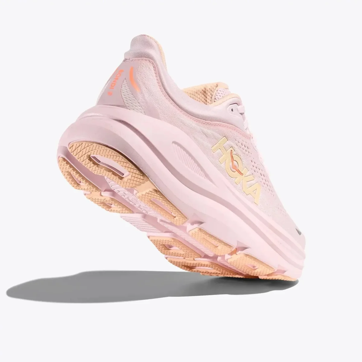 La parte superior de las BONDI 9 está confeccionada con una malla transpirable que garantiza una ventilación óptima, manteniendo tus pies frescos y secos durante todo el día. Los refuerzos sintéticos estratégicamente ubicados añaden durabilidad y soporte a la estructura del calzado, asegurando que cada paso que des esté respaldado por una firmeza excepcional.