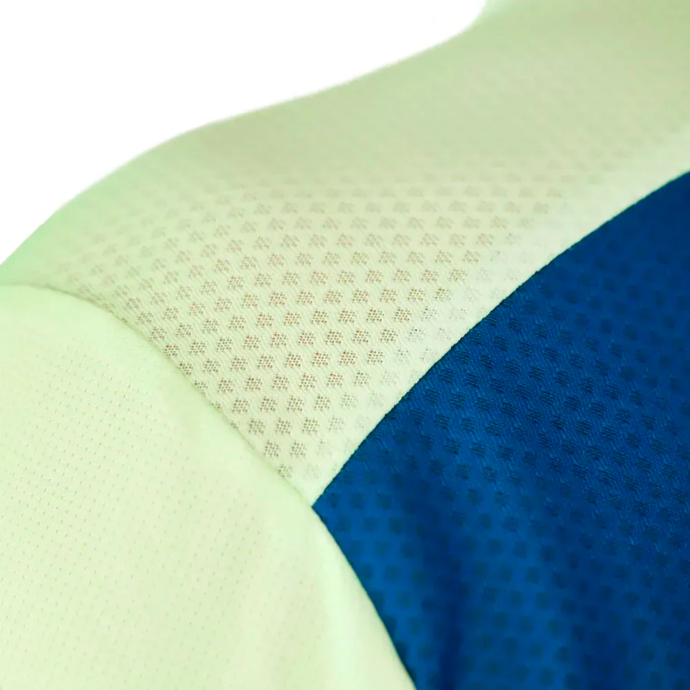 El tejido principal, Cool2Dry®, destaca por su suavidad al tacto y su capacidad para secarse rápido. Además, es elástico, lo que facilita el movimiento en tramos técnicos sin generar sensación de tirantez. En la espalda y las axilas, los paneles de rejilla mejoran la ventilación en las zonas donde más se acumula el calor. Este detalle marca la diferencia en esfuerzos largos o con mochila.