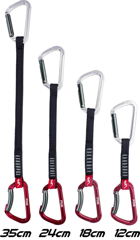Las Cintas Express Montgrony 24cm Fixe vienen con mosquetones Montgrony (con sistema Keylock) para el chapaje y para la cuerda.