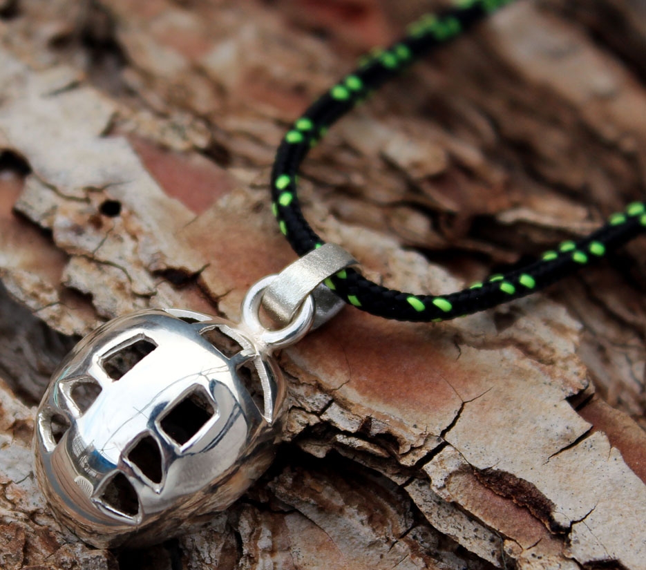 Colgante Casco Escalada es una reproducción de un Casco de Escalada en plata de ley y completamente artesanal.