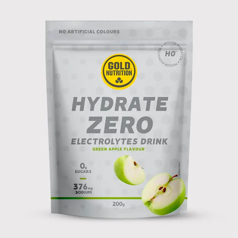 Hydrate Zero GoldNutrition® (H0) es una bebida funcional formulada para ofrecer una hidratación eficaz sin azúcar añadido, tanto durante como fuera del ejercicio. Su fórmula combina electrolitos esenciales (sodio, magnesio y potasio) con BCAA 2:1:1, lo que ayuda a prevenir calambres y mejora la recuperación muscular en entrenamientos intensos o prolongados.