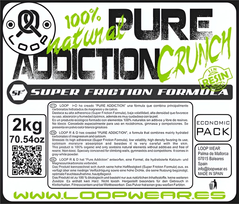 Magnesio Pure Addiction Crunchy 2kg LoopWear, adherencia, calidad y natural. ENVIO GRATIS (PENINSULA) en nuestra Tienda de Escalada