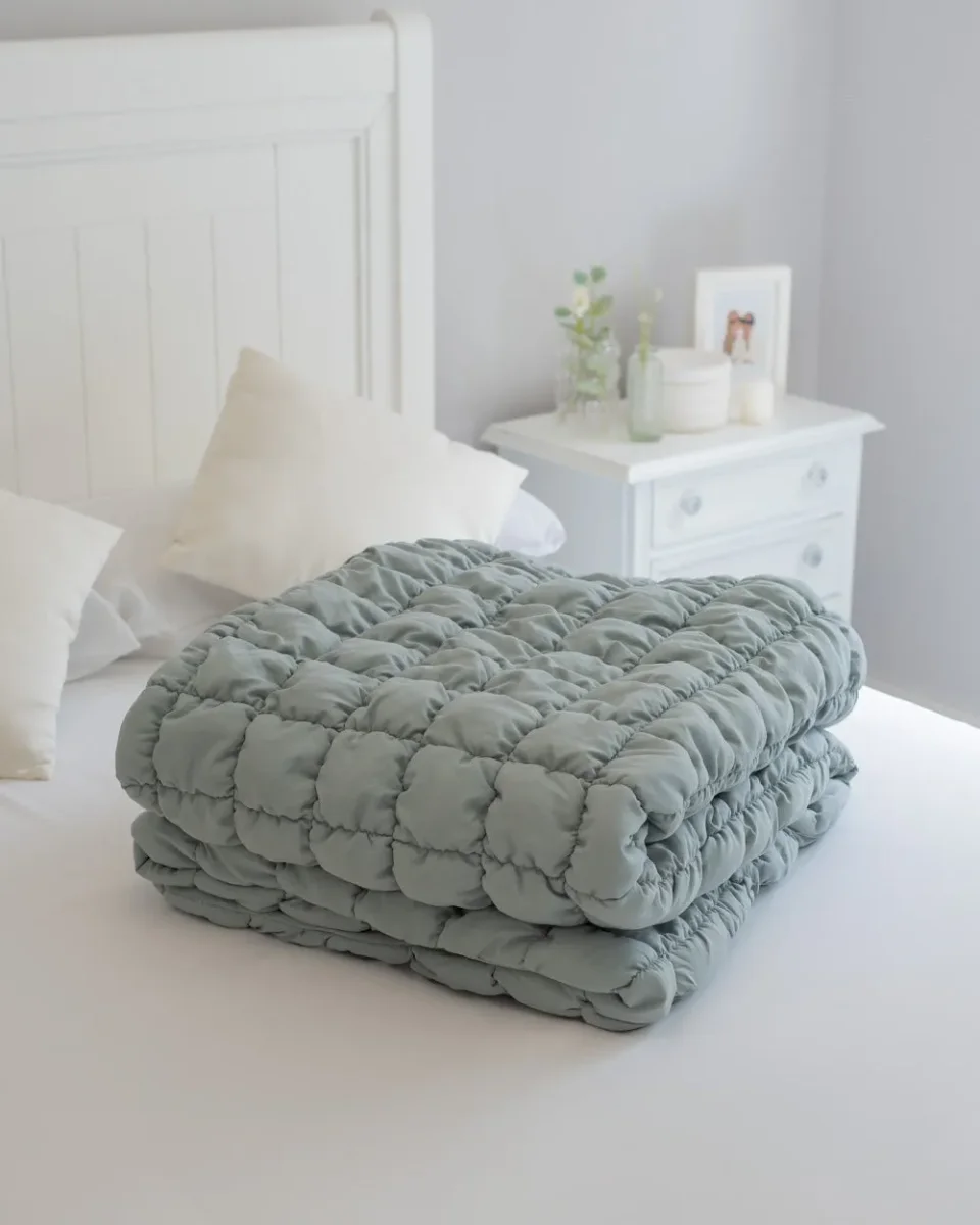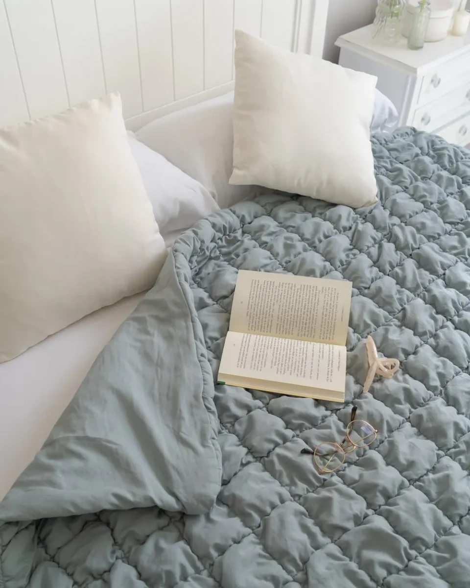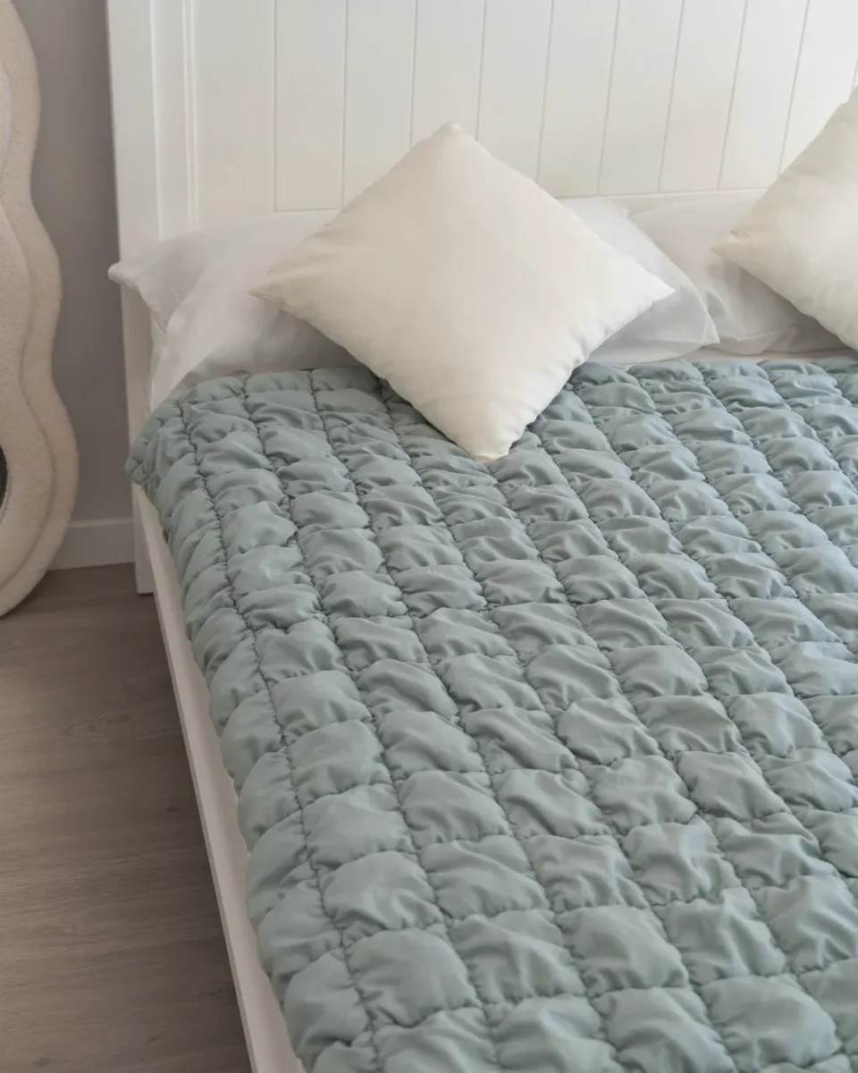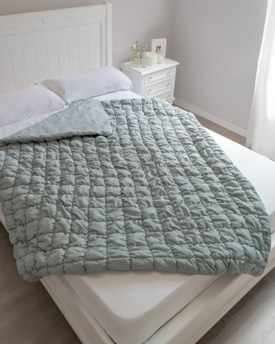 ¡Nuevos productos de textil para tu hogar! Manta color verde acolchada en forma de cuadros, 100% poliéster. Es una manta suave y tierna, perfecta para las tardes de peli y manta o para las noches más frías.