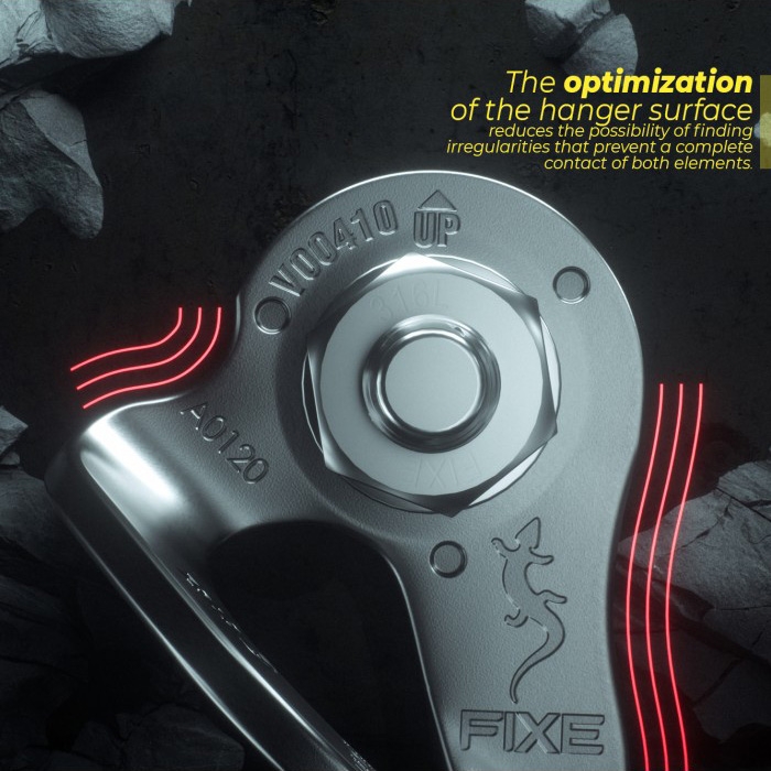 La Plaqueta FIXE 1 Inox 316L tiene el borde interno redondeado para un menor desgaste de los mosquetones y que podamos disfrutar de la escalada al máximo nivel.