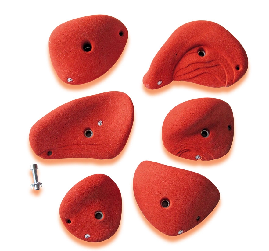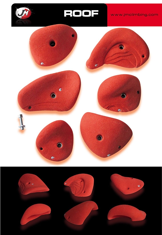 Presas Roof Set es una colección de JM Climbing que cuenta con 6 unidades XXL, ideal para entrenar la continuidad en grandes desplomes y techos o para empezar a familiarizarse con la Escalada para Noveles o juegos infantiles.