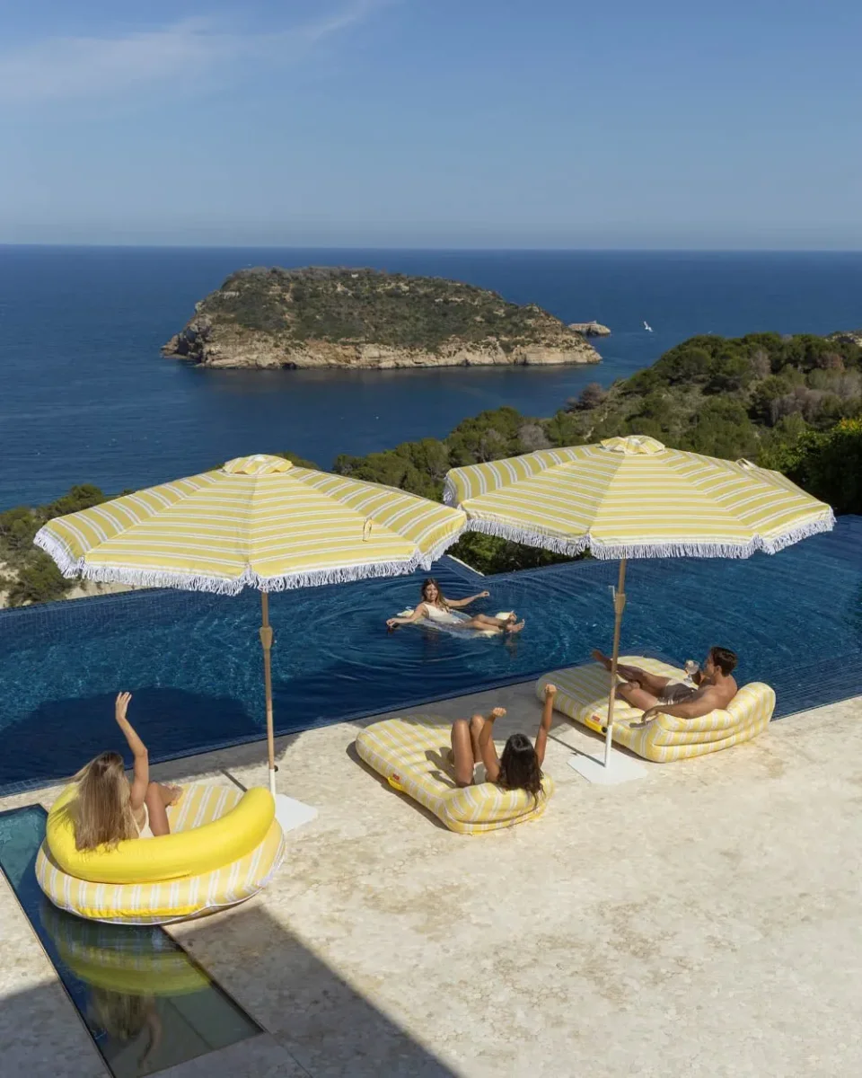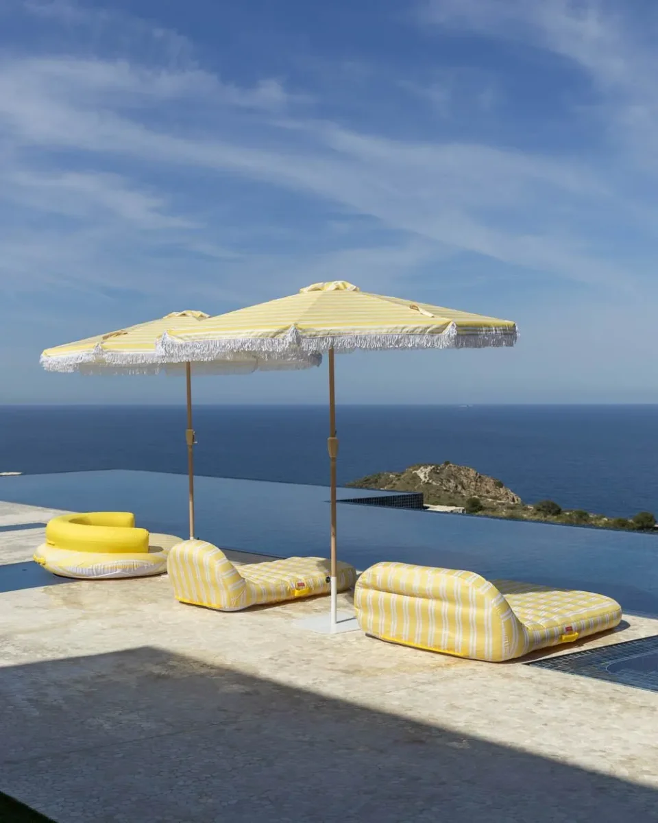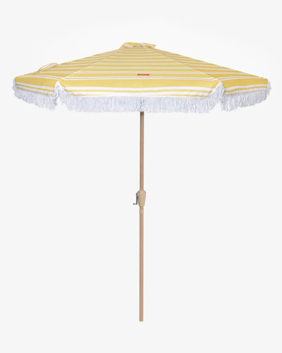 Nuestra sombrilla grande a rayas amarilla es el accesorio perfecto de la temporada. Con orientación regulable y apertura anti viento. además de UPF 50+. Perfecta para tenerla en el jardín o en tu terraza.