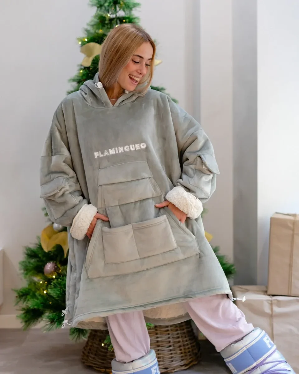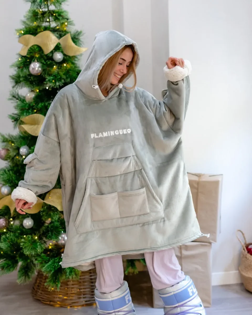 Sudadera manta perfecta para ir por casa calentito. Disponible en color color azul, verde y un diseño de cuadros. Perfecta para combinar con las zapatillas de casa.