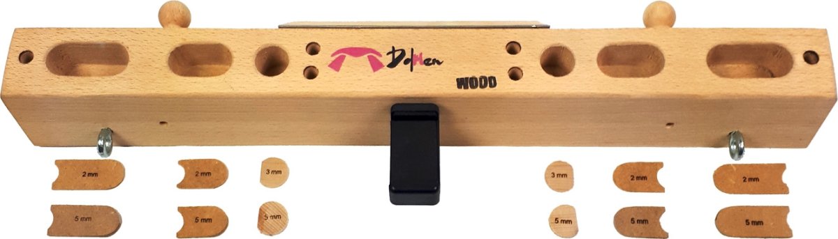 La Tabla Multipresa Wood Dolmen está fabricada en madera de Haya y cuenta con un diseño minimalista para ofrecer el máximo de posibilidades en el mínimo espacio. Aparte del listón móvil, tiene un romo central (solo se puede usar con la regleta recogida a 30mm), 2 monodedos, 2 bidedos, 2 tridedos y plaquetas para variar la profundidad de estos. Tiene un soporte para colocar el móvil y 3 anillas. 2 laterales para colocar bolas para hacer dominadas o suspensiones en pinza y la central para colocar una goma o cordino para disminuir o aumentar la dificultad de los ejercicios.
