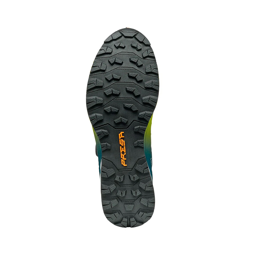 - UPPER: La parte superior de malla y microfibra envuelve tu pie como un calcetín gracias al sistema de construcción Sock-Fit LW, evitando puntos de presión y asegurando la máxima comodidad y ajuste preciso. La protección del tobillo es proporcionada por el sistema de construcción EXO SCARPA. El talón está bien estabilizado por la icónica banda de TPU que rodea completamente el zapato.